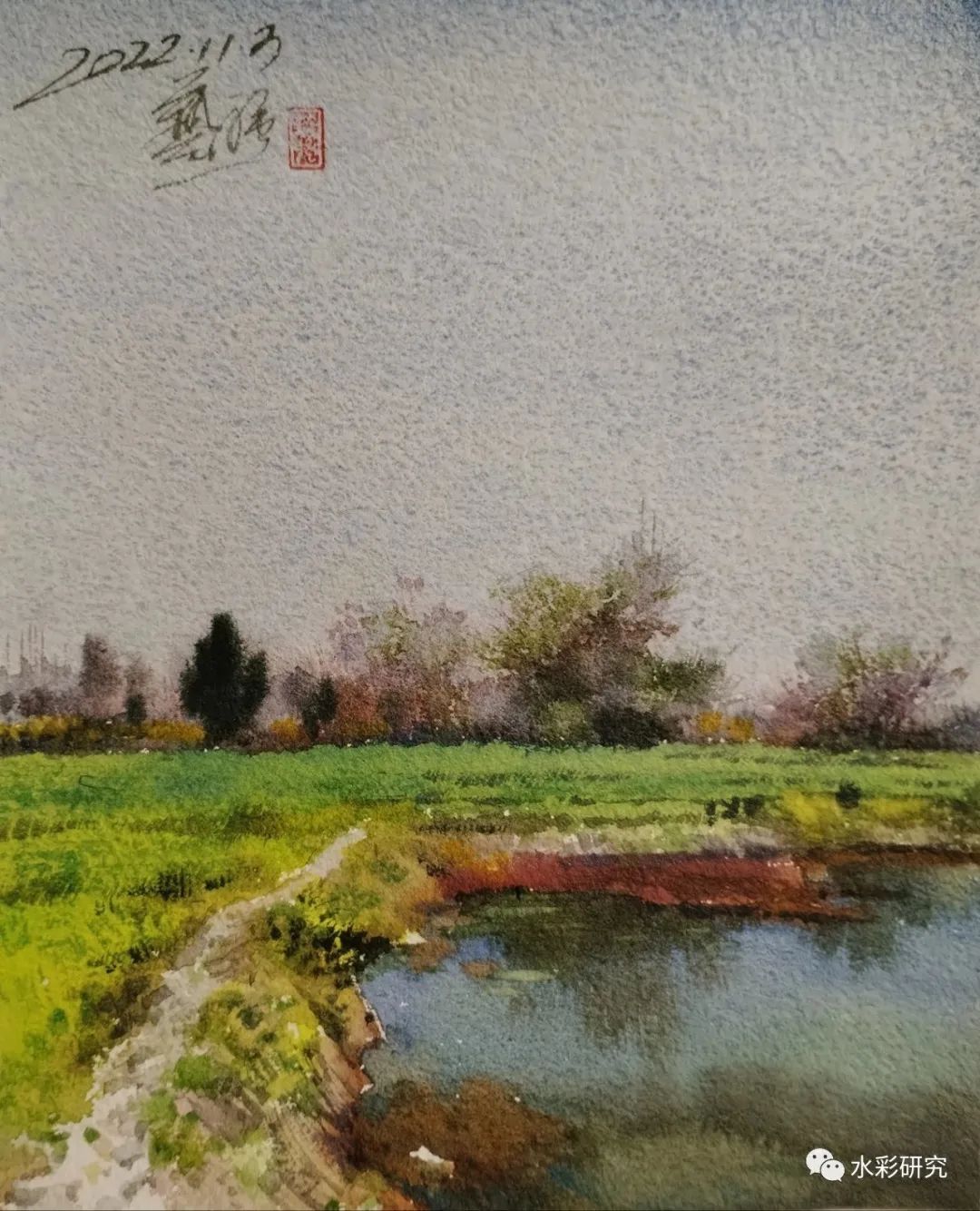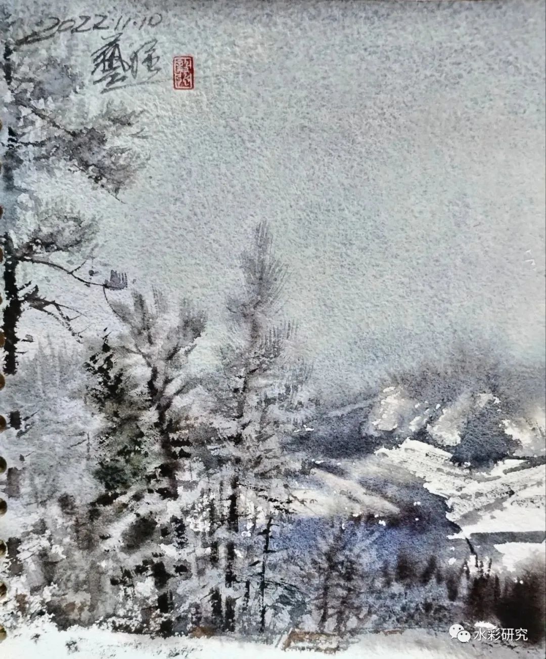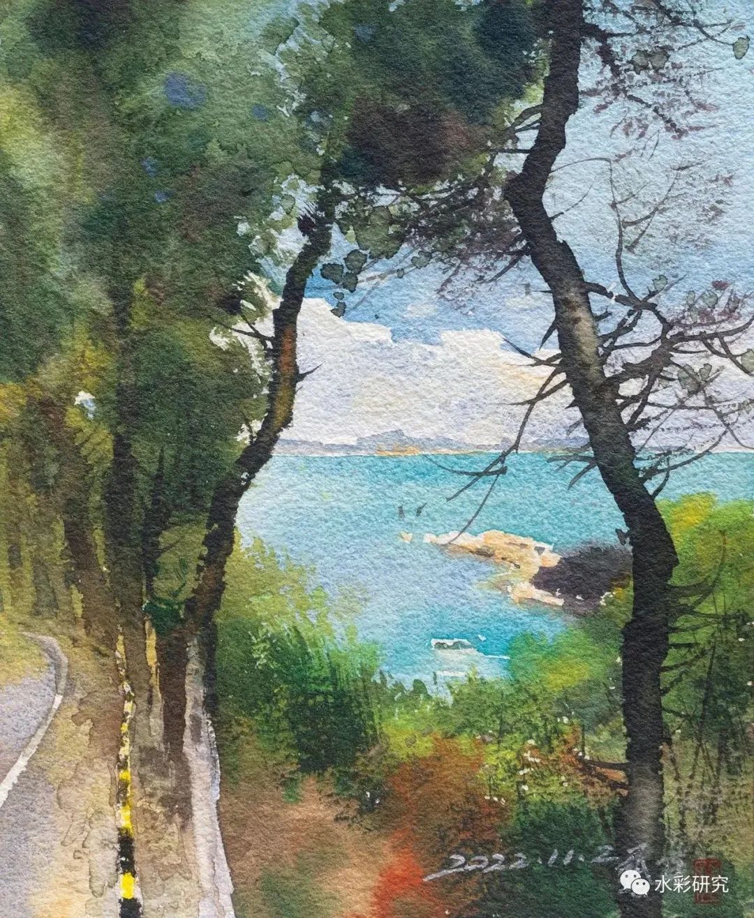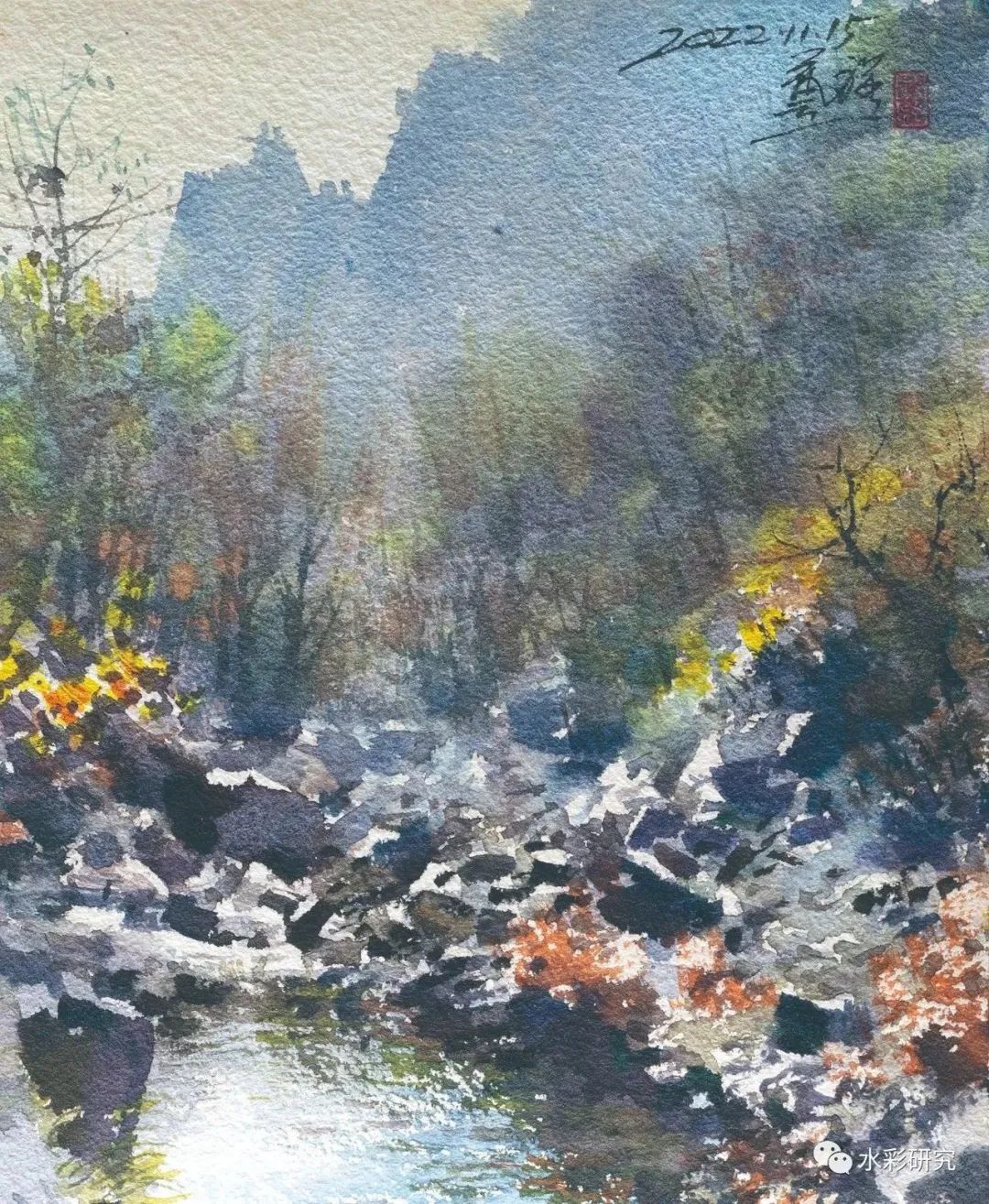 戴藝強最近又不辭辛苦,跋山涉水,到大自然的懷抱里,創(chuàng)作了一批精彩的水彩畫。這批新作充滿探索精神,用筆簡練,形神皆備;用色雅潔,頗有品位。更可貴的是他借鑒了中國山水畫大師的山水寫生之妙,經營位置,氣韻生動,獨得意境之美,令我輩嘆為觀止。