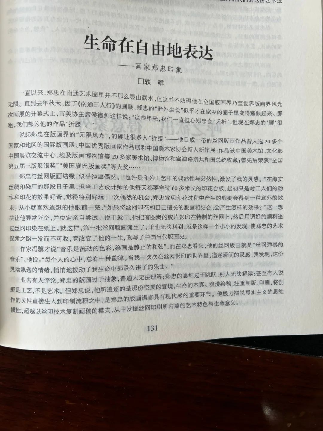 一直以來(lái),鄭忠在南通藝術(shù)圈里并不那么顯山露水,但這并不妨礙他在全國(guó)版畫界乃至世界版畫界風(fēng)光無(wú)限。直到去年秋天,因了《南通三人行》的畫展,鄭忠的“野外生長(zhǎng)”似乎才在家鄉(xiāng)的圈子里變得耀眼起來(lái)。那次畫展的開幕式上,市美協(xié)主席侯德劍這樣說(shuō):“這些年來(lái),我們一直擔(dān)心鄭忠會(huì)‘夭折’,但現(xiàn)在鄭忠的‘腰’很粗,我們都為他的作品‘折腰’?!?/div>