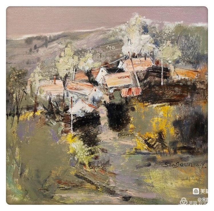 鄰水的岸邊,喝茶聊天的人們,給這個(gè)春天的畫面,增添了幾分閑適的親切感,舒展的線條,分外好看。