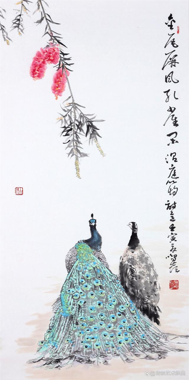 《金尾屏風(fēng)孔雀閑》138cm×69cm 2022年