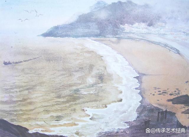 《金色沙灘,白浪蜿蜒》水彩畫 39cm×54cm 1984年