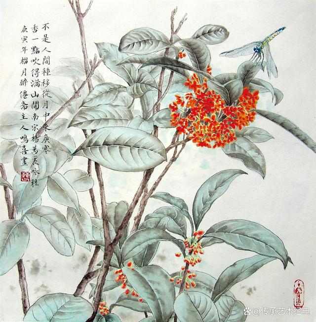 蘇涵:我仔細(xì)閱讀了曹鳴喜教授近年所畫的《八閩百花圖》,產(chǎn)生了一種特別的藝術(shù)認(rèn)識。這一百幅花的選材,除了畫家們經(jīng)常畫的牡丹、梅花、菊花之類的花種之外,最多的則是在八閩(福建)地區(qū)所見到的不一定為其他地域畫家所涉及的花種。但都是曹鳴喜的所見所愛,拈來入畫,不論其形色如何,也不論其是否具有誘人之處,都有他的特殊人生體驗在其中。其次,這一百幅的“八閩”之花,變?yōu)楫嫾夜P底之花的時候,被賦予了種種不同的表現(xiàn)形式,有的寫意,有的工筆,有的寫意工筆相兼。畫家把現(xiàn)實世界的花按照自己的審美意愿轉(zhuǎn)移成獨特的藝術(shù)構(gòu)思和藝術(shù)表現(xiàn),從而呈現(xiàn)出豐富多彩的樣貌,爭奇斗艷,各具風(fēng)韻,每一幅畫都是每一種花的盡情綻放。再次,這《八閩百花圖》多有題詩相配,不僅詩畫呼應(yīng),更添畫中風(fēng)韻,而且許多畫的本身也風(fēng)姿搖曳,意趣天成,給人一種目醉神迷之感。詩畫本一律,以詩之意趣而畫花,又以花之神韻而豐富詩意,應(yīng)該是曹鳴喜創(chuàng)作這些作品時的理性思考,當(dāng)然也是他自然而成的深厚功力所致。與曹鳴喜教授相交有年,不僅欣賞他的畫,而且欣賞他的書法。特別是他為廈門工學(xué)院沐風(fēng)軒所寫的文天祥的《正氣歌》,石刻之后,厚重典雅,筆力遒勁,是非常優(yōu)秀的畫家之書。在廈門,不僅四季如春,四季有花,而且蜂媒蝶使,時時都有,這樣的配合,亦絕非隨意的搭配,而是在畫家的心里,春意常在,所以才攜將春光寫花韻,使百花入畫更動人。這《八閩百花圖》是來自于大自然的花卉之美,也是來自于畫家心底的人生之美!