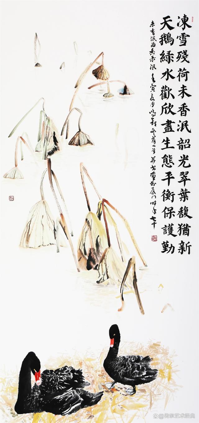 《凍雪殘荷香未泯》(冬荷)248cm×124cm 2022年
