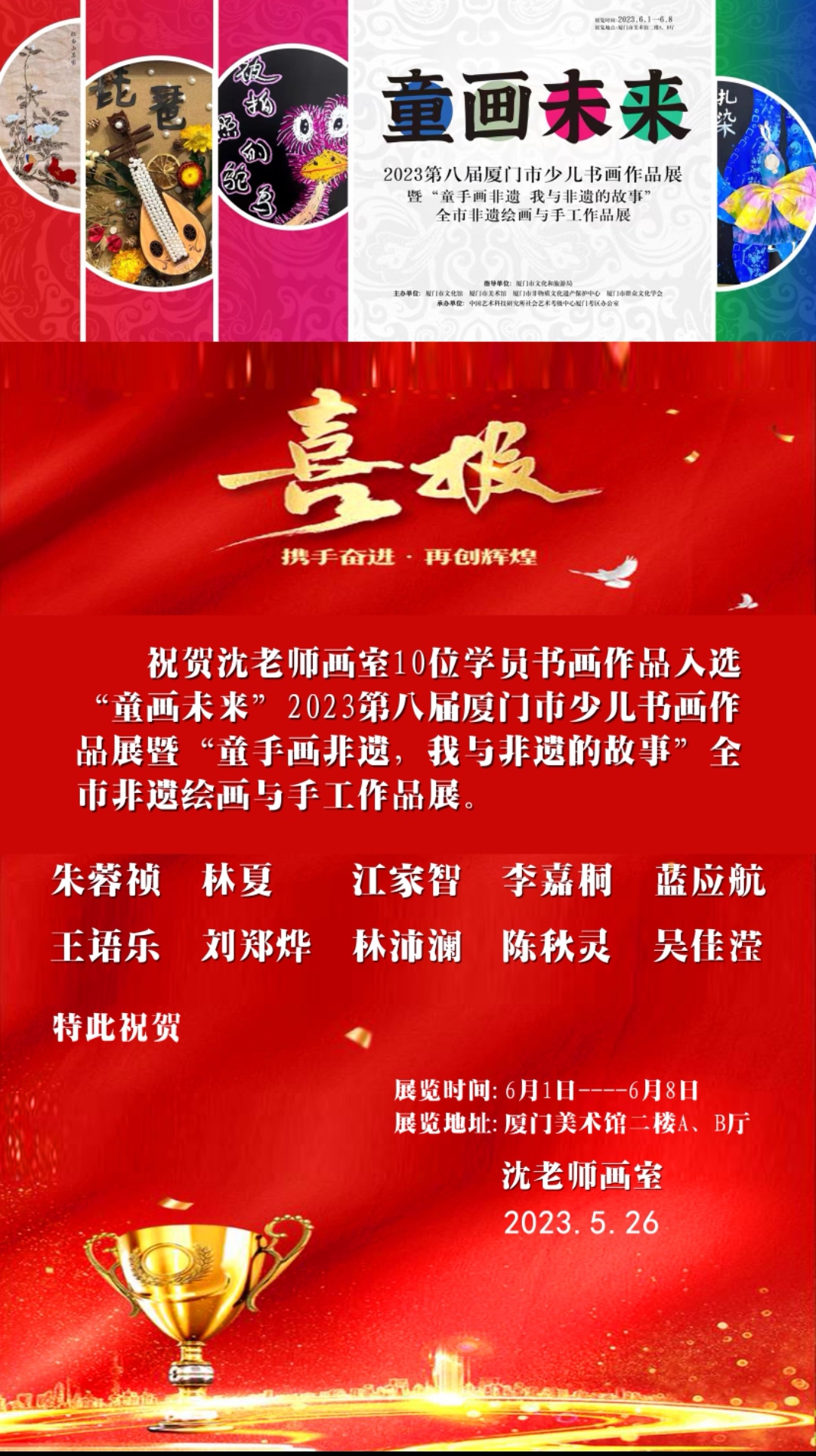 2022一2023年指導(dǎo)30名學(xué)員入選兩屆市級少兒書畫展