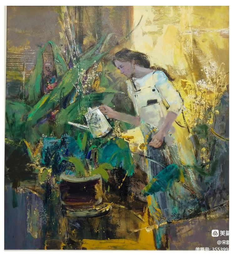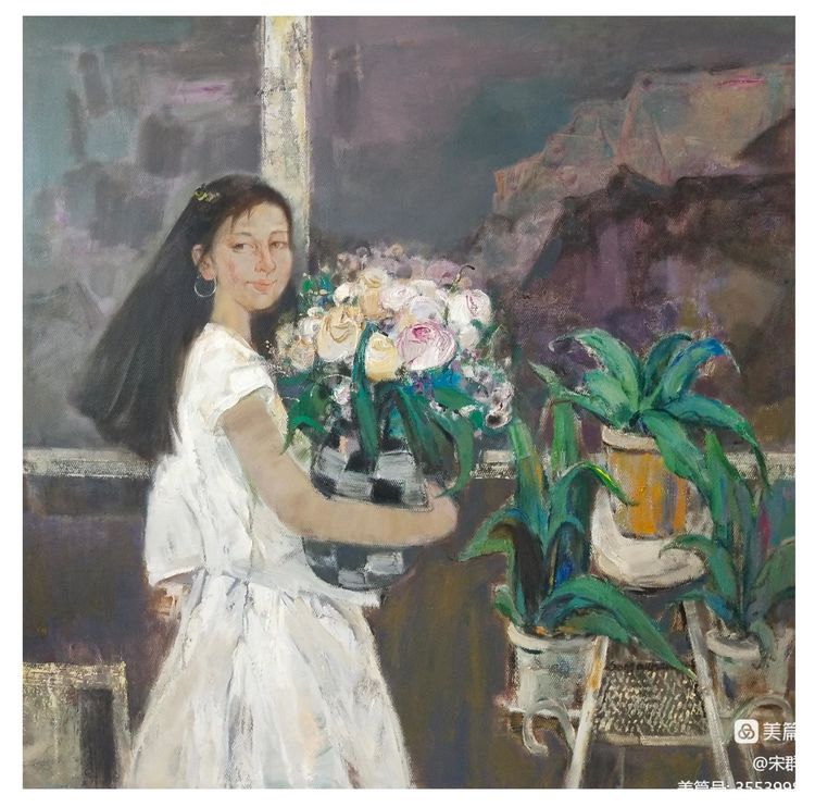 畫室經(jīng)常會(huì)跑來一群如花朵般的學(xué)生們,他們看畫的神情認(rèn)真而好奇。有時(shí)候幾個(gè)人會(huì)小聲嘀咕,或許是說到開心之處,他們的臉上,便會(huì)綻開如芍藥花兒般的笑容。