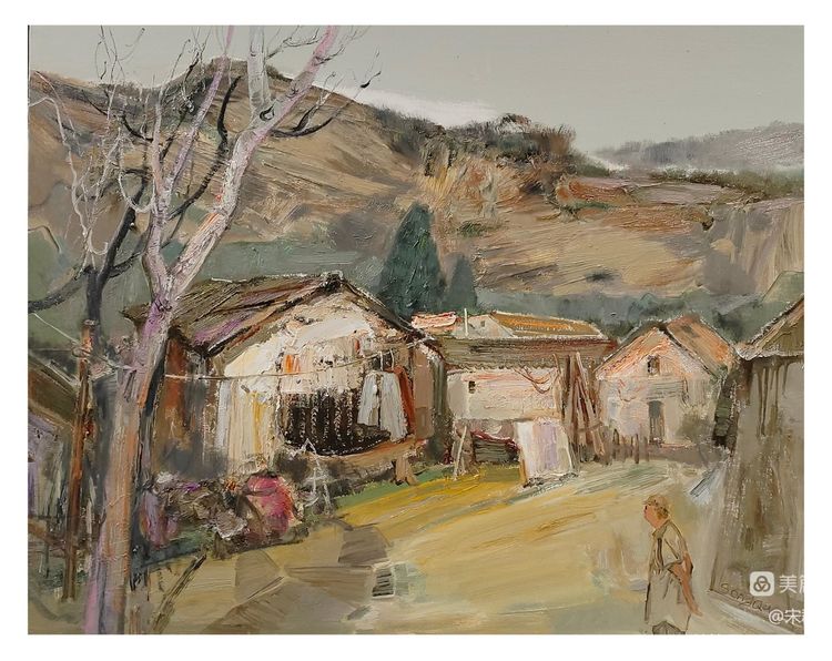 于是,我的的目光便順著這些青綠色的節(jié)奏,慢慢移向石板屋頂,移向彎曲的石階,以及隨處可見(jiàn)的在這里寫(xiě)生的學(xué)生們。目光會(huì)在老樹(shù)的影子里發(fā)呆一會(huì)兒,繼而移向遠(yuǎn)處的巍巍太行。