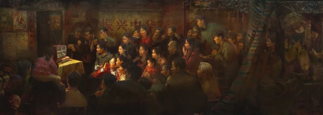 王裕亮、楊幼梅《萬人空巷》油畫 700x250cm
