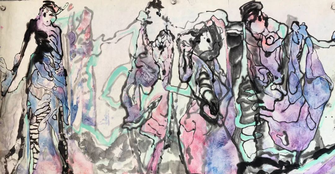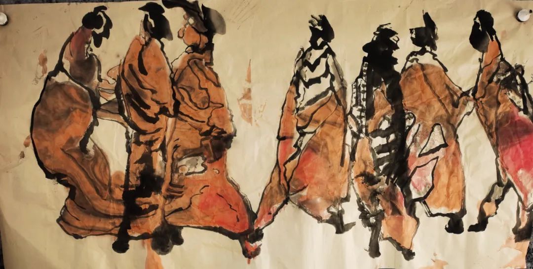 《抽象人物系列》/68x 135cm / 宣紙彩墨/2022