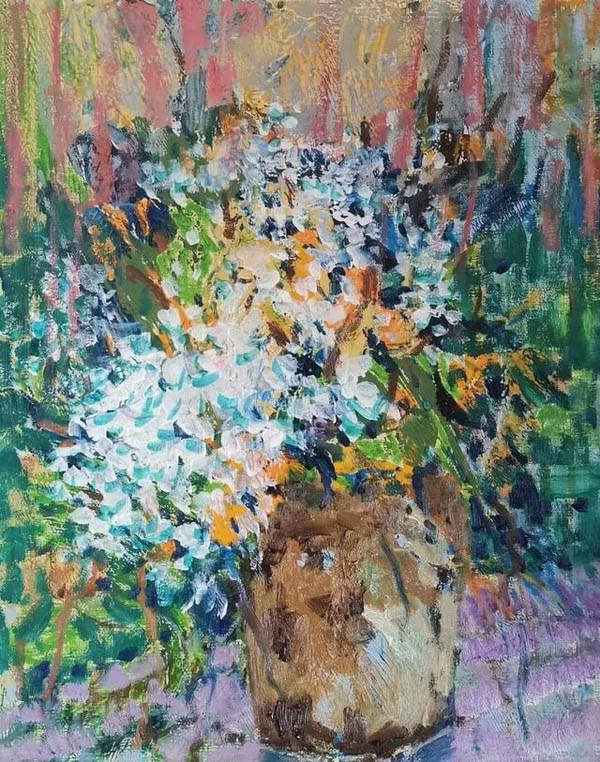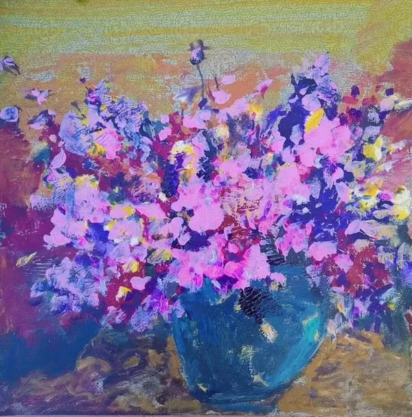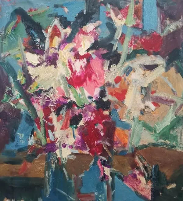 康健都先生的靜物花卉作品,具有獨(dú)特的魅力。他在油畫作品中運(yùn)用中國畫的意象觀念,在似與不似,像與不像上做足了文章。界限模糊而又可辨,色彩艷麗而又不俗,既有新意又有表現(xiàn)力,與傳統(tǒng)靜物花卉拉開了距離,逐漸形成自己獨(dú)特的風(fēng)格。他的這種探索精神是值得敬佩的。