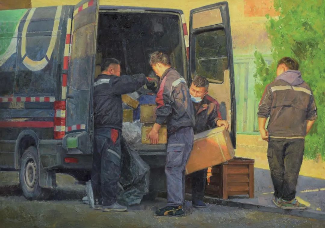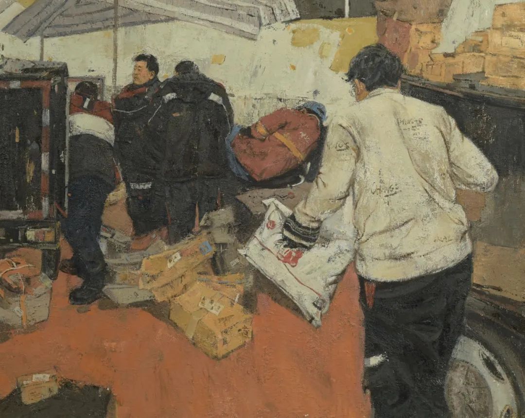 《時代節(jié)奏——快遞小哥之四》 朱  銘 120cm×150cm