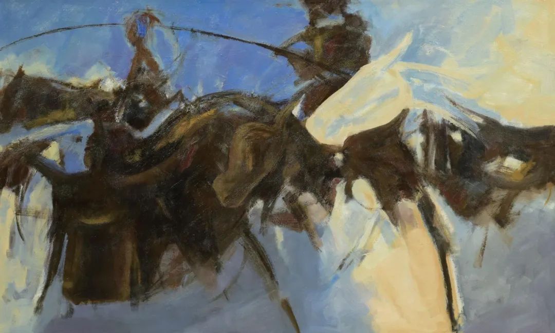 《草原上的搏克》 晏風(fēng)雷 140cm×180cm
