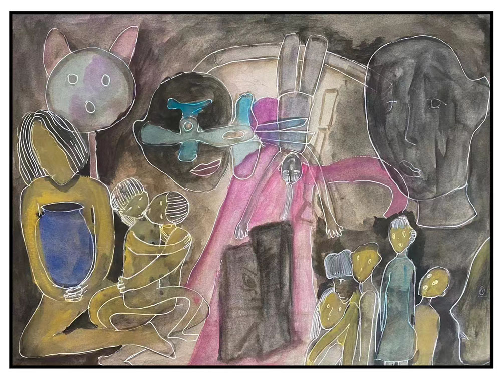 於是你走了,人和人聲和人手裏的光都緩緩退去,高樓大廈開始瓦解,水泥路變成一條人畜走出的泥巴路。右手邊一座圓形的孤墳。你正在辨認墓碑上像鳥爪印一樣的文字,墳裡突然走出一個人,你恍惚覺得她有些面熟,她走到你身後,一雙手臂將你緊緊環(huán)住,彷彿是在控制你,綁架你。你並沒有膽怯,只在記憶裡搜尋她的身份。她好像是你小時候,她便在你隔壁上了吊的阿婆,又彷彿是你那個抑鬱的同學。她笑著挾著你往前走,你覺得她想愚弄你,於是你說:我知道你已經(jīng)死了。她彷彿受到某種刺激,環(huán)著你的手臂變得無力,不僅如此,她的整個身體都開始坍塌,最後終於變成像果凍一樣攤在地上的會動的一團,只有兩隻手和頭還有骨骼。她開始在地上游泳,兩隻手拼命劃著,化為一灘的身體卻一動不動,身上早已沾滿了枯葉和泥土。你突然覺得她很可憐,你開始鼓勵她,說了很多言不由衷的話。她卻詛咒你,用猙獰的面孔嚇唬你。你的每一句話都被誤解,每一句安慰都像在炫耀。