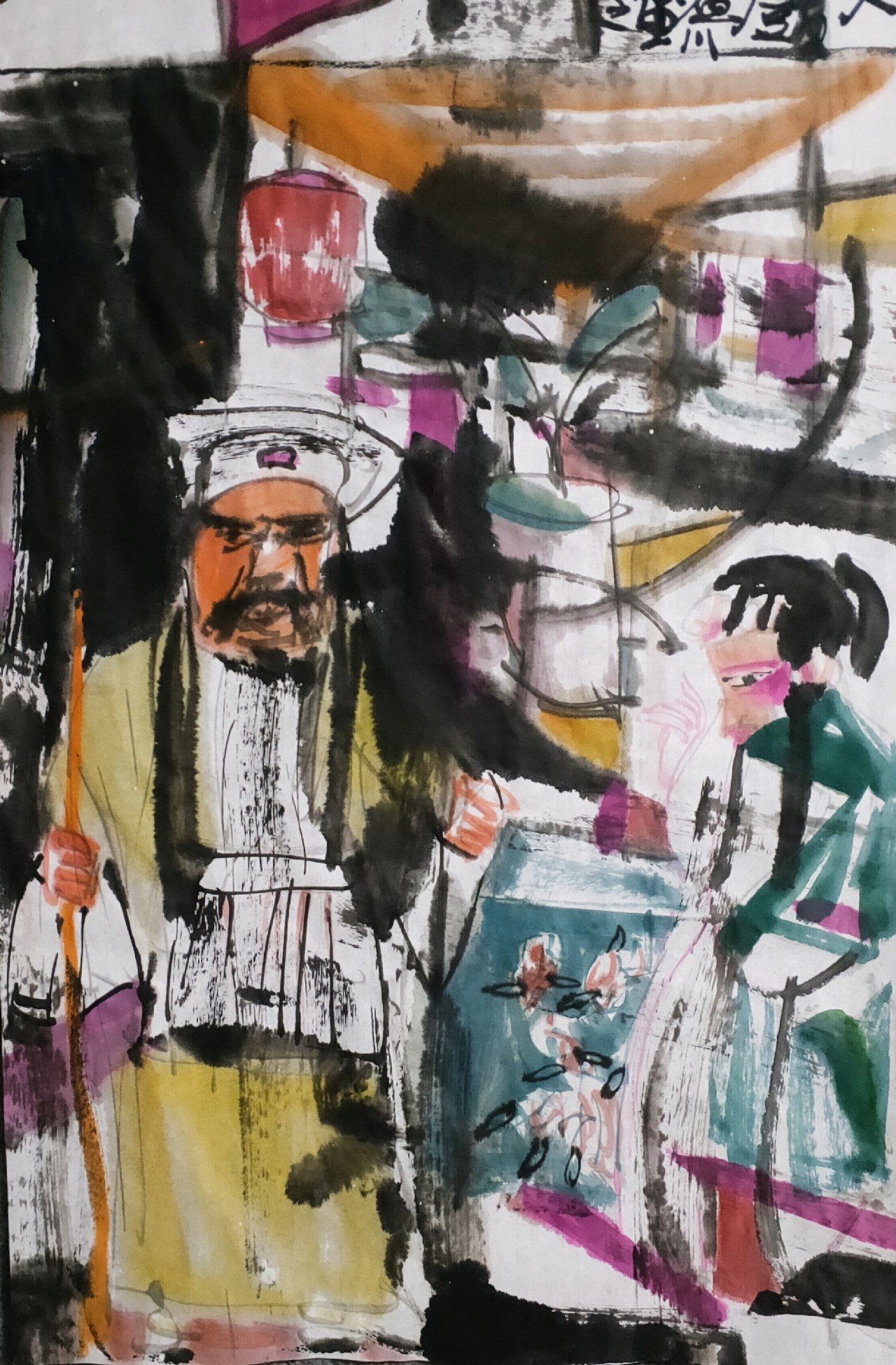 宮紅權(quán)彩墨作品