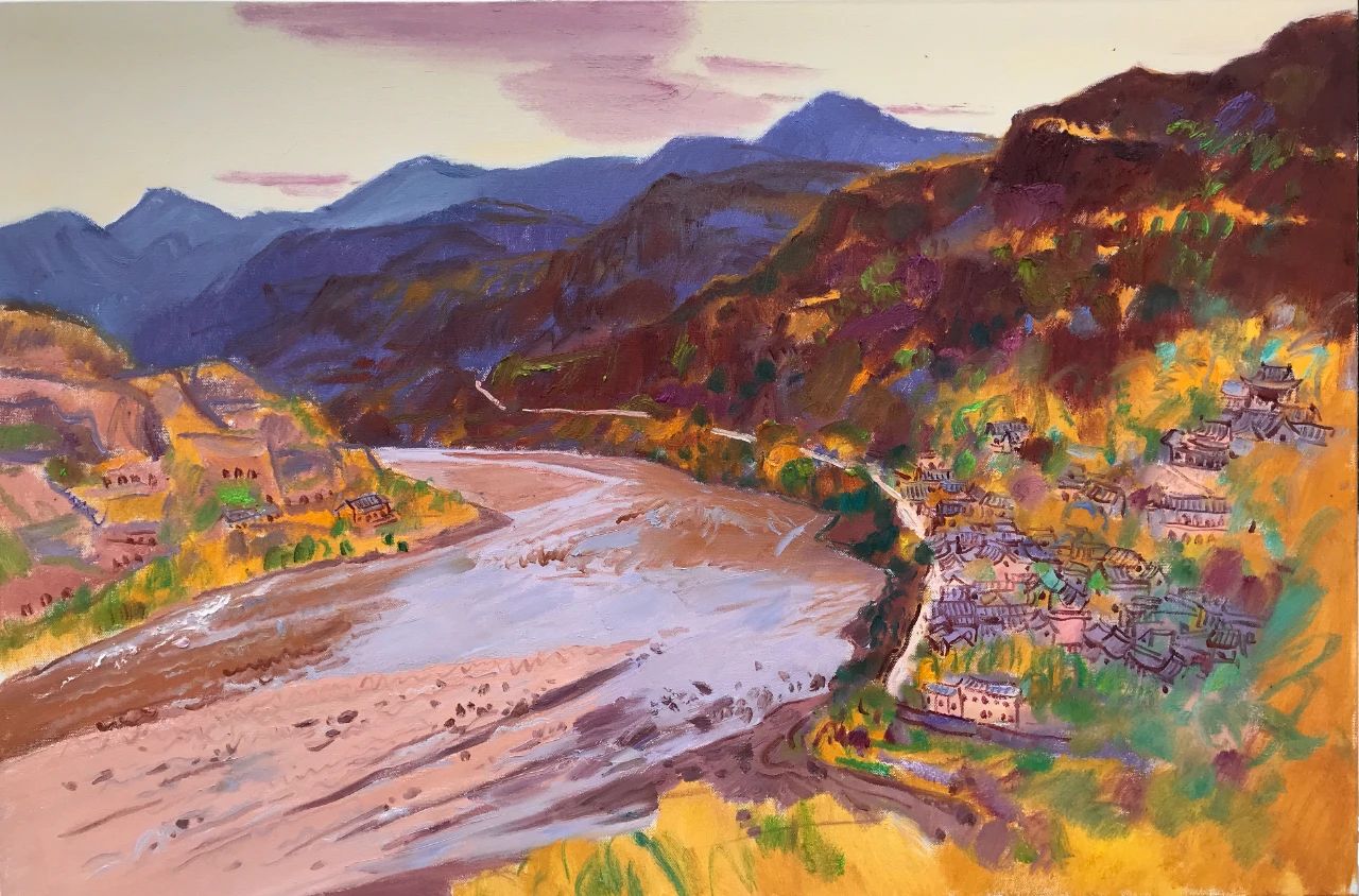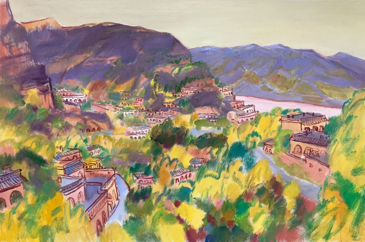 中國油畫家的色彩表現(xiàn),不乏凝重者,也不乏沉穩(wěn)者,但像宋衛(wèi)東這樣絢麗明亮者相對較少;他的繪畫在于色彩關(guān)系對立而產(chǎn)生的碰撞,形成了交響樂般的視覺張力。近年來,他游走于各地的山山水水,鄉(xiāng)間田頭,名勝古跡,彰顯了一位寫生畫家豐富的視覺閱歷,對油畫風(fēng)景作出了方向性探索,甚至不斷發(fā)酵形成了相對獨立的面貌。作為一位優(yōu)秀的畫家,最為可貴的莫過于逐漸建構(gòu)自己的藝術(shù)風(fēng)格。風(fēng)格的形成既包括藝術(shù)家的性情稟賦,也包括探索過程中的不斷思考與積累,等等這些都基于宋衛(wèi)東不斷自覺并持續(xù)探研的從藝態(tài)度。他的畫面上沒有視覺意義上的遠(yuǎn)近,色彩與筆痕中不斷出現(xiàn)似曾相識的景象,一種洇滲在畫面中的色線透著某種光暈,傳遞出與自然的可親。