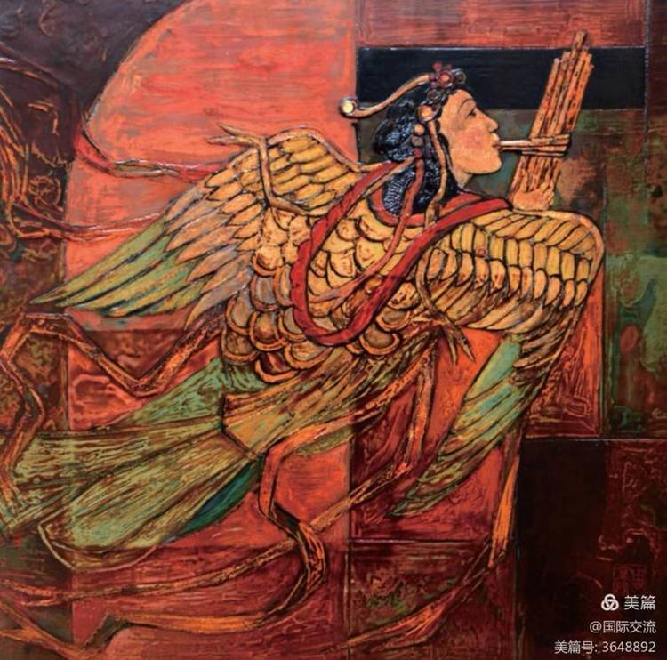 琴瑟和鳴 漆畫尺寸:120X120cm