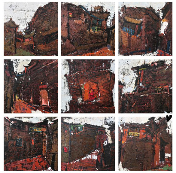 《家鄉(xiāng)記憶三》( 50*50cm)x9 2019~2021 2021“當(dāng)下與未來”國際當(dāng)代藝術(shù)展 東盟文化藝術(shù)交流中心主辦