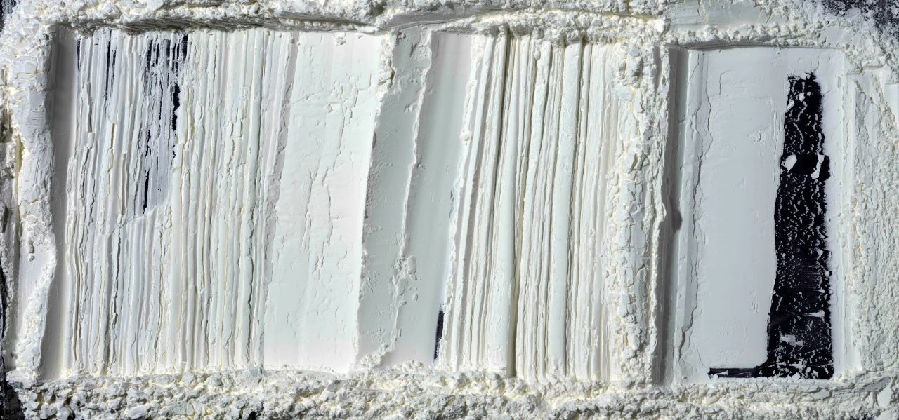 此“人蛻”的藝術,也是靈魂過往的留痕與跡化,如同蟬蛻,蛇蛻,人蛻,也是整個世界精神之蛻,是大地靈魂之蛻。此人蛻的精神皮膚——似乎是靈魂走失后的殘留物,褶皺、印痕、劃道、凸起、凹陷、長短、曲直,這其中的節(jié)奏輕重、深淺都會引發(fā)不同的闡釋、解讀和聯想,形成了虛、空、白、幻、薄的觸感,每一幅都如此迷人,召喚觸摸,但又拒絕觸感,在此獨特的誘惑中,揉皺的衛(wèi)生紙,獲得了靈魂的肖像,也是人性蛻變的變形記。