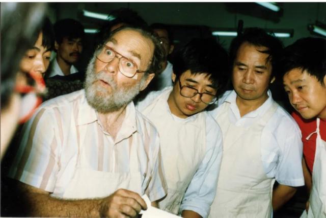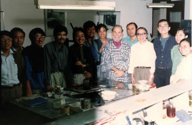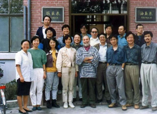 1992年于中國(guó)美術(shù)學(xué)院版畫系門口,加拿大皇家學(xué)院院士大衛(wèi).西維伯格“全國(guó)銅版畫高研班”全體學(xué)員及教職員工合影留念。