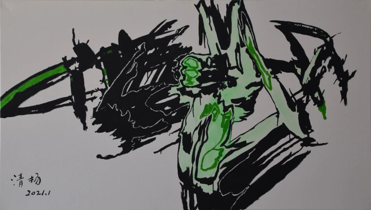 畫家在作畫中誠然有被壓抑的一面,然而更為龐大的發(fā)揮,在其聲音與視覺形成的共相弧中得以表現(xiàn),相信張清揚在作畫中肯定播放著猛烈的交響樂,可能是“尼伯龍根的指環(huán)’,可能是”義勇軍進行曲”,這種垂直的能量通過聲形二元灌注至畫布后,會予其以強大的爆發(fā)力,而作品就在此中“功到成時,自是有德”地“不為而為”誕生了。步驟是無足輕重的痛癢罷了,它達到了以多為一的結果(一是人作為實體的條件)。