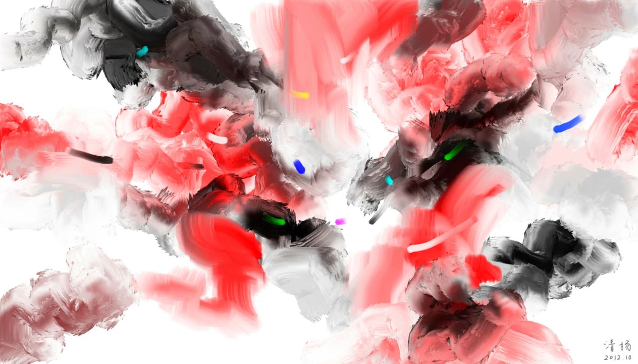 張清揚的繪畫,首先無疑是這一派心理特征最好的表現(xiàn),這種本我,可以把它說成是主體的無理性存在,即原始的沖動,感情的綿延,單子純粹的連續(xù)性,以及一種超我的行為——前定的和諧。如果秉持“我思故我在”的思想,同樣可以把他的繪畫作品“解構主義”看透,即“我思”是一種先于本質的思考,揭示存在的無序。但這只是一個片面,這種唯理論已經(jīng)被現(xiàn)代主義所摒棄。于是我們看到,無理性的人類本能導致了這一觀念的全然釋放,就像八卦,分陰分陽極為容易,陰陽生五行,五行到三行,三行到四時,然后萬物快速增長。張清揚的繪畫,無疑是這種冒險性人類本能的最好體現(xiàn)。這樣一種單子的釋放,既沒有阻力因素,也沒有輪回作梗,自然可以得到全然輕松的藝術境界,真是難得了。正應和了萊布尼茨的話,單子集合成人的行為,而這個行為的世界,是人的自由行為在作為,而非大腦的機械布局,因而在可以看到的實體中,這種行為表現(xiàn)的最夸張,也具有最強的掠食性,最快意恩仇,這正是人們可以從中吸取的精神。