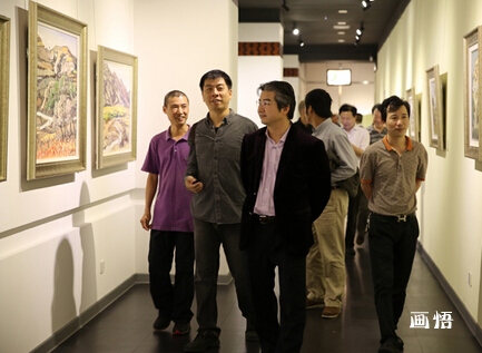 中國美協(xié)理事,福建省文聯(lián)副主席、書記處書記,福建省美協(xié)副主席,福建師范大學(xué)美術(shù)學(xué)院碩士生導(dǎo)師王來文(中)在中國美協(xié)水彩畫藝委會委員、福建省美協(xié)副主席、泉州市美協(xié)主席、泉州畫院院長郭寧(左二)和龍虎文化名家藝術(shù)館董事長王惠兵(右)的陪同下參觀