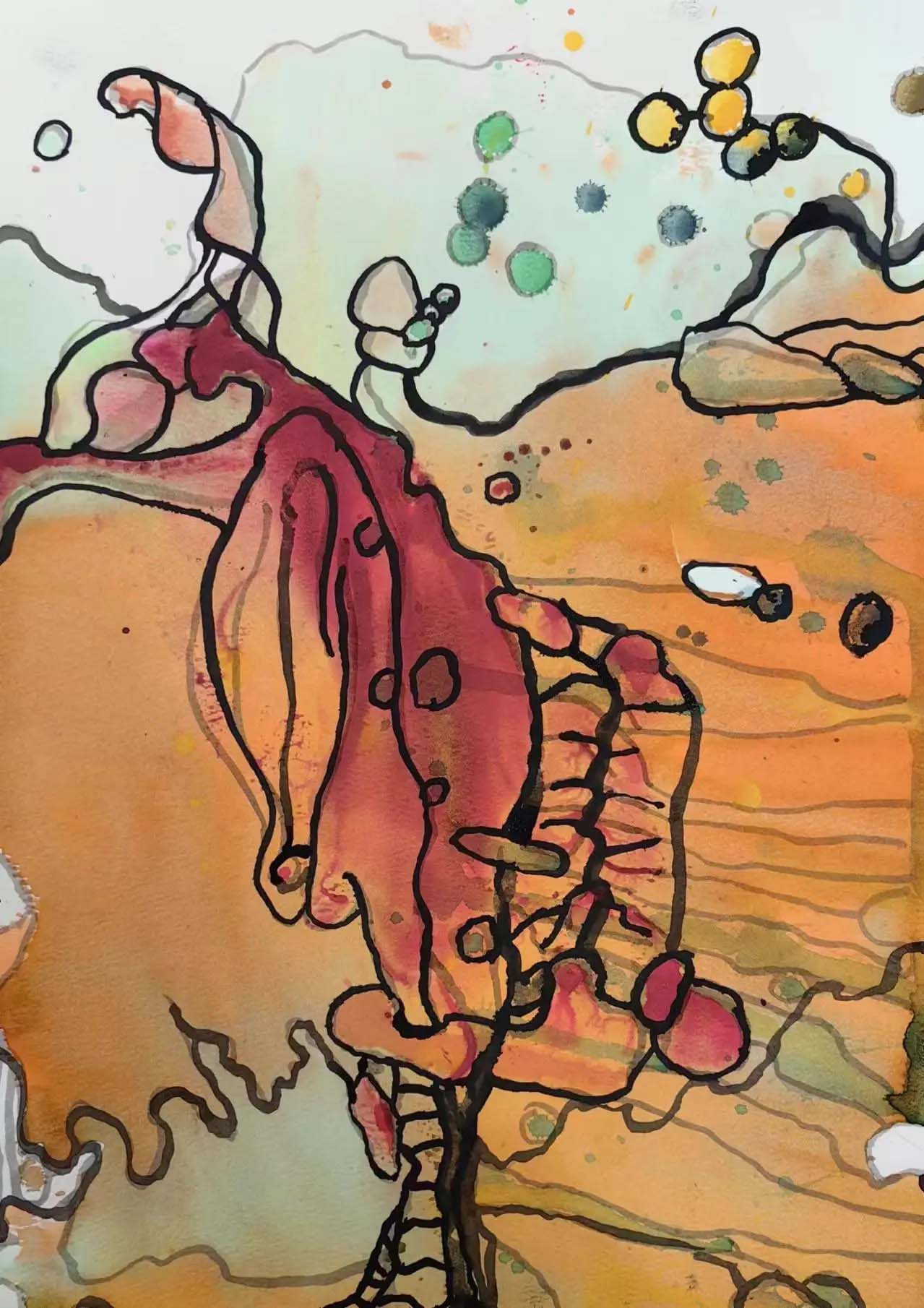 一個平面的紙當(dāng)中要有色彩的一個因素,色彩的空間感分布,色塊的大小,然后再加入人的情感,然后再加入線條的波動變化,然后再加重各種各樣線條的粗細(xì)等等,各種各樣的因素全部匯攏在一起,然后再加上畫是針對一個肉人,在一個畫面上去繪制一個畫面。