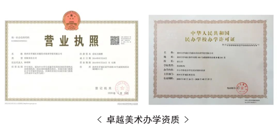 至創(chuàng)辦以來屢獲碩果,2012年陳玳鵬同學(xué)取得中國美院全國第2名,2014年沈晉同學(xué)取得中央美院全國第2名, 2015年22人次專業(yè)通過中國美術(shù)學(xué)院,林欣同學(xué)取得北京電影學(xué)院全國第6名... 2019年福建省聯(lián)考孫伯淵同學(xué)取得全省第12名,2020年專升本李煜翎以專業(yè)287分(滿分300)奪得全省第1名,2021年中職生王曉薈專業(yè)奪得188高分(滿分200),2022年福建省聯(lián)考黃仲麟同學(xué)取得全省第31名、顏一心取得全省第63名..2023年中職生葉碧玲同學(xué)以總分694取得全省第1名..等佳績, 現(xiàn)已為漳州地區(qū)輸送近千名中央美院、中國美院、天津美院、北京服裝學(xué)院、北京電影學(xué)院、廈門大學(xué)、福建師范大學(xué)、廈門工藝美術(shù)學(xué)院等重點(diǎn)院校學(xué)生,卓越美術(shù)是為漳州學(xué)子實(shí)現(xiàn)美術(shù)夢想的搖籃,讓我們共同努力,成就未來!