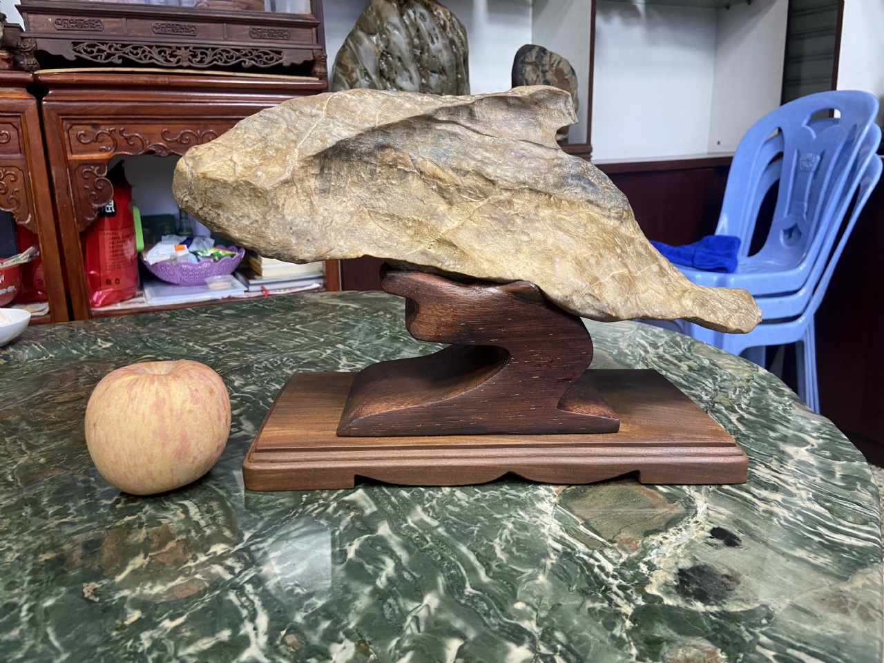 賞石靜心,怡情養(yǎng)性,以石傳性,借石抒情,托石言志。每一塊美石,都是一部經(jīng)典,一個(gè)故事,一份情感,一份財(cái)富,讓人從中感悟到大自然的無限妙趣。賞石,就是用繪畫的眼光、藝術(shù)的形式、文化的理解、詩歌的語言,運(yùn)用綜合的藝術(shù)形式,將觀賞石內(nèi)涵充分表述出來的過程。是由感性到理性、由表面到深層、由文化到藝術(shù)的轉(zhuǎn)化和升華的過程,也是對石頭的意境和內(nèi)涵進(jìn)行深入發(fā)掘與藝術(shù)創(chuàng)造的過程。