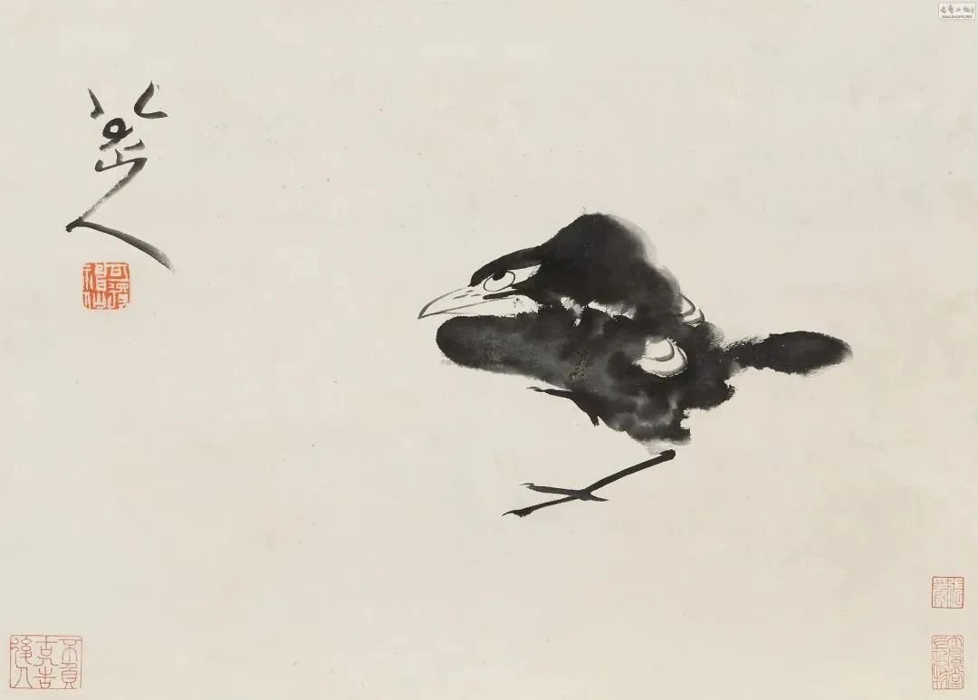 ▲ 朱耷筆下的愣頭青 看到這些情緒鳥,就自然會(huì)想起八大山人朱耷的花鳥畫作,里頭總有一只眼神燜燜的小家伙。這些鳥兒要么“翻著白眼望青天”,要么“垂頭喪氣閉雙眼”,眼神里總透露著那么一股憂郁、孤獨(dú)的復(fù)雜情緒。那只孤芳自賞的小家伙,簡直就是末代王爺朱耷的化身。