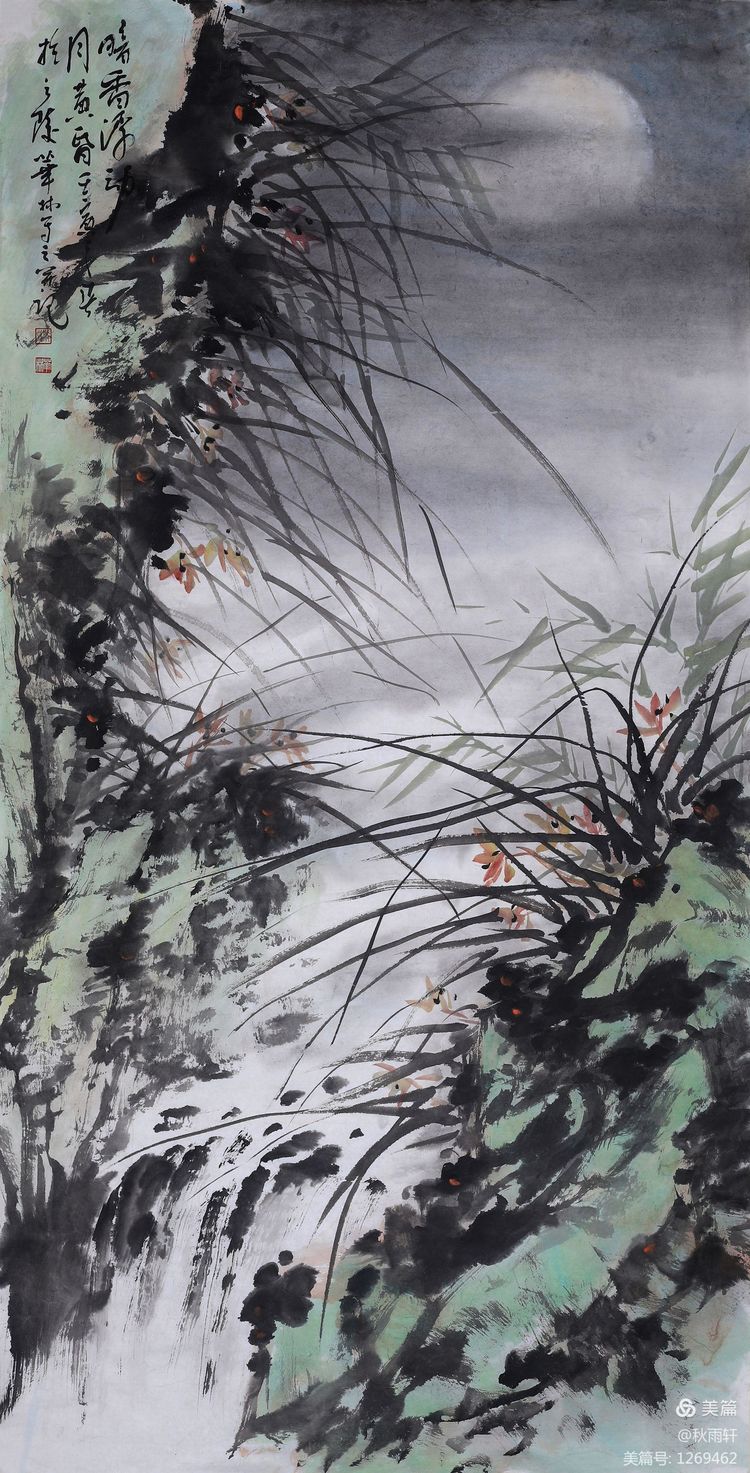 2004年上京求學,深造于中央美院,得益?zhèn)鹘y(tǒng)美學之理,寫意花鳥得法脫俗。期間兼修山水之課堂,追宗朔源,入門有道,自然脫胎換骨矣。讀作品《春風拂拂》,刪繁就簡,幾枝竹干,幾片竹葉,滿紙生氣,竹底石頭,落筆揮毫,筆頭鋪開,轉折頓挫,虛實成形,畫面頓覺氣韻生動,遒勁渾厚,是為寫意精品。作品《暗香浮動》,素蘭長于山崖之中,一上一下呼應成趣, 山泉落瀑,幽暗月華顯得神秘莫測,此作有蘭花之飄逸,亦有山水之意境,當代潘天壽常以山水之境入畫花鳥,氣象博大。此作更有深意,暗香浮動,疏影橫斜,讓觀者隨意入畫,耐人尋味。寫意花鳥簡之快意縱橫,猶如脫韁野馬。繁之入微入味,一絲不茍,如參禪悟道。