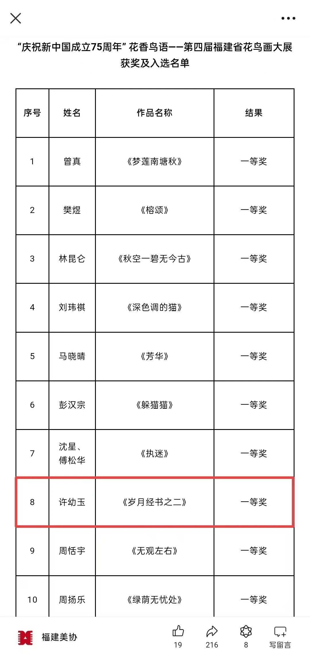 2024年9月23日晚,福建省美術家協(xié)會揭曉“花香鳥語——第四屆福建省花鳥畫大展”獲獎及入選名單。來自福建漳浦的