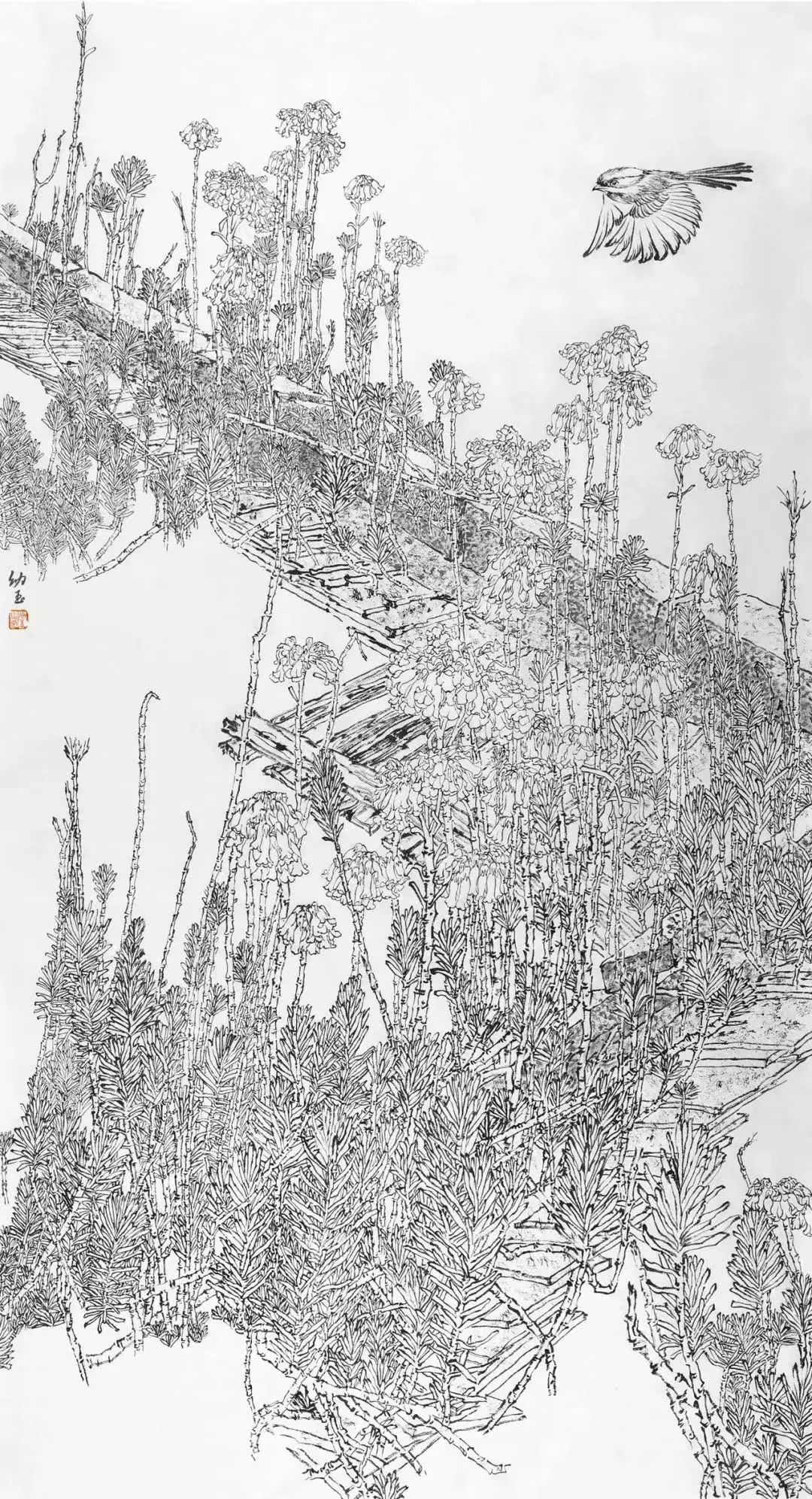 落地生根 196cmx83cm 許幼玉 中國畫白描