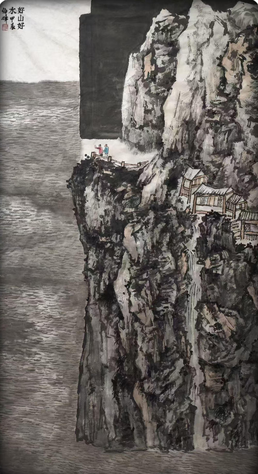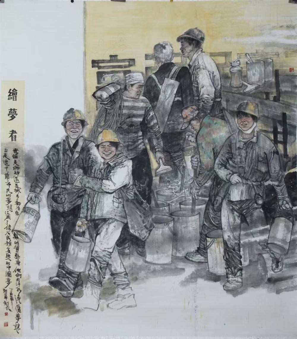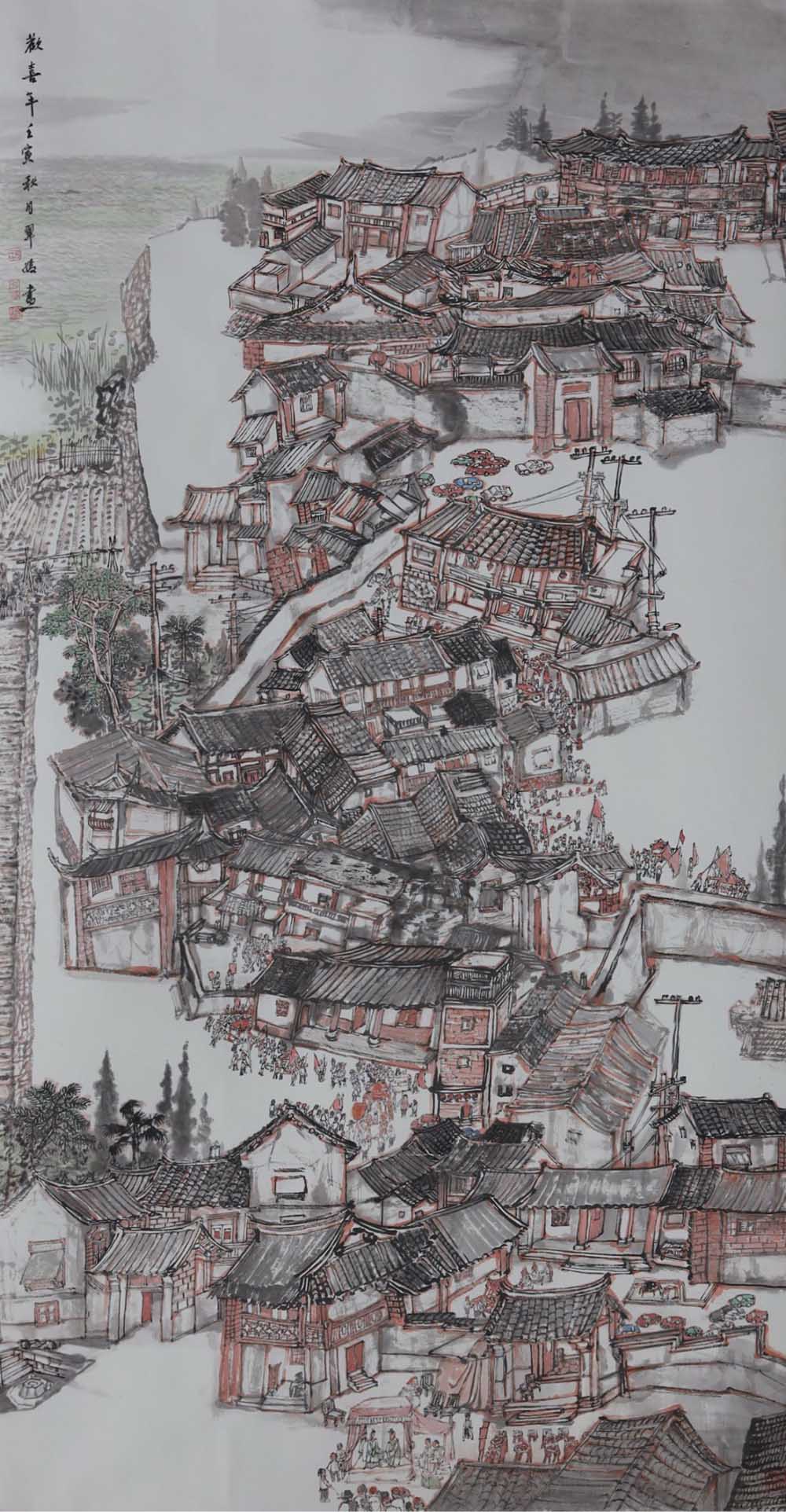 此次展覽,共展出作品54幅,其中大部分為中國畫。其畫面大都立足當(dāng)代現(xiàn)實(shí),以靈動(dòng)的筆觸,或繪涵江山水,或?qū)懨袼罪L(fēng)情,表達(dá)了對(duì)新年和生活的良好期望。