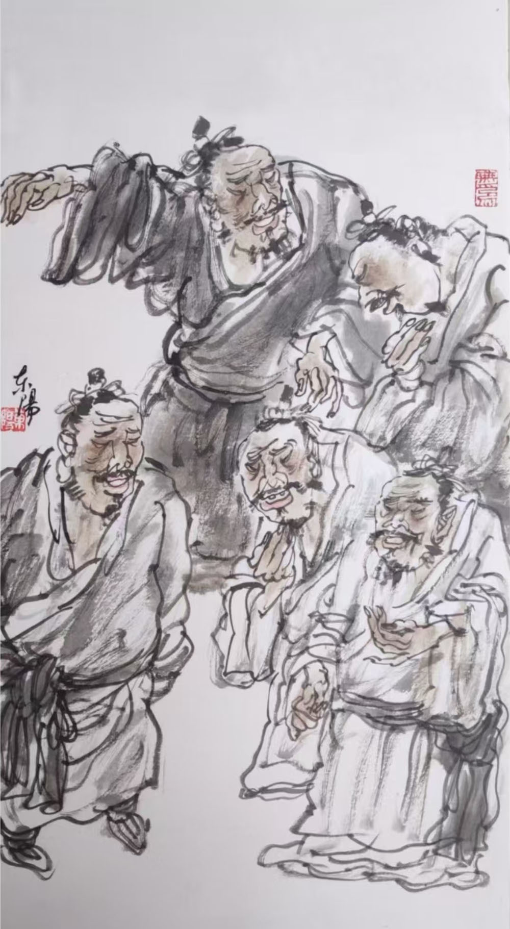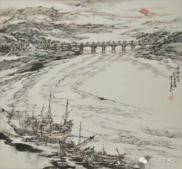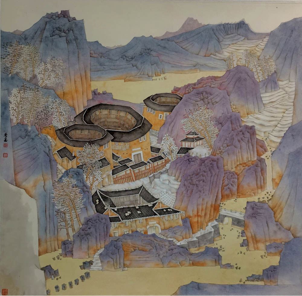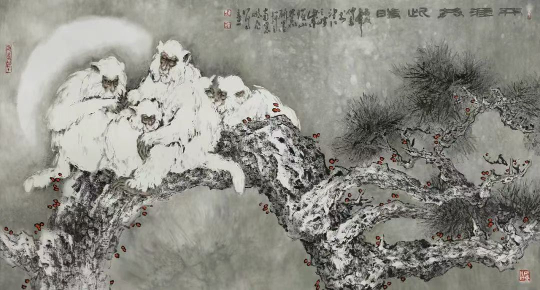 此次展覽,共展出作品54幅,其中大部分為中國畫。其畫面大都立足當(dāng)代現(xiàn)實(shí),以靈動(dòng)的筆觸,或繪涵江山水,或?qū)懨袼罪L(fēng)情,表達(dá)了對(duì)新年和生活的良好期望。