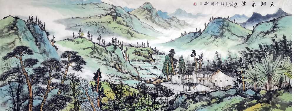 趙金喜 《遠(yuǎn)山澄碧霧》75×230cm