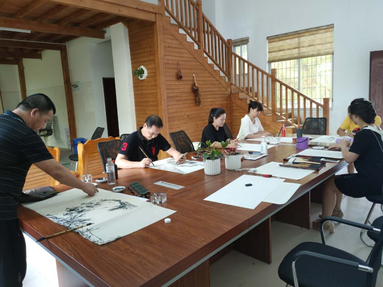 7月26日華安美協(xié)與北溪畫(huà)院組織我縣美協(xié)會(huì)員到沙建古村落寫(xiě)生采風(fēng)活動(dòng),并在沙建小學(xué)舉行筆會(huì)活動(dòng),大家當(dāng)場(chǎng)揮毫潑墨并相互交流藝術(shù)心得。