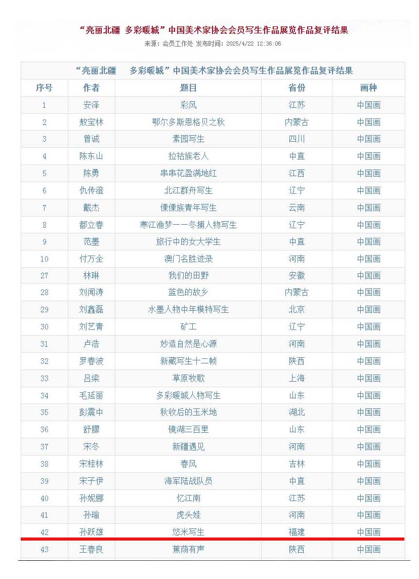 “亮麗北疆 多彩暖城”中國(guó)美術(shù)家協(xié)會(huì)會(huì)員寫(xiě)生作品展覽作品復(fù)評(píng)結(jié)果