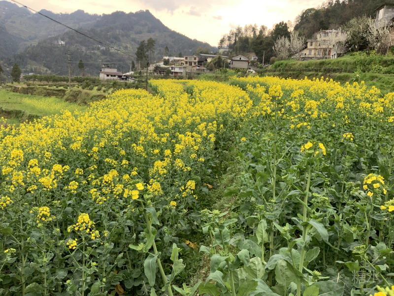當?shù)朵h劈開墨綠底色時,粉綠像霧氣從山坳里漫出來,不是往年油菜花的甜膩,倒像一盅冷泡的綠茶,澀中帶清,在畫布上滲出薄霧般的涼意。刀痕遠山人家的沉默,粉綠是春寒里未醒的夢,三者絞纏成一首未譜完的曲子——調子淡了,可味覺卻更濃了。