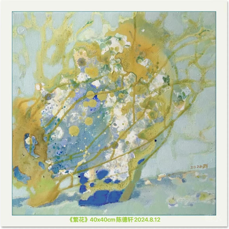 每年,我總會以油菜花為題,用各種不同的黃色在畫布上譜寫一場春天的絮語。可今年,那些明黃像吃多了的糖霜,膩在喉頭,于是我把“我的調色盤砸了個稀碎”我用略帶灰色的粉綠替代蜂蜜黃,讓更沉的墨綠壓住春天的躁動。