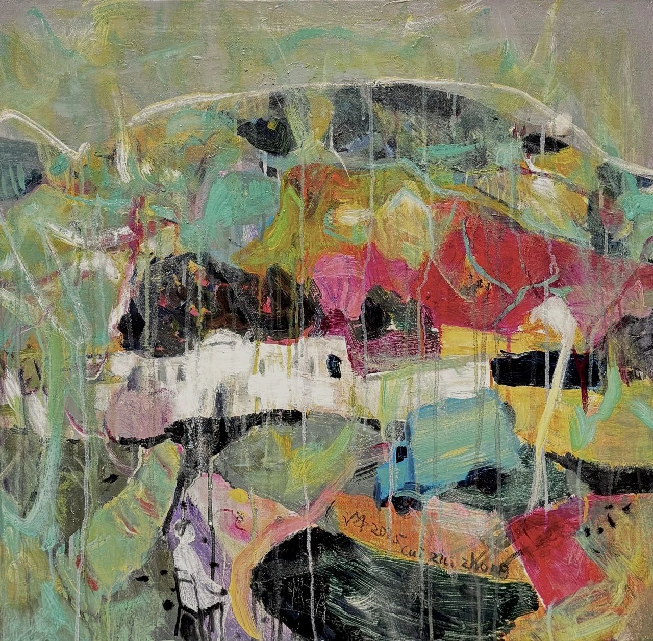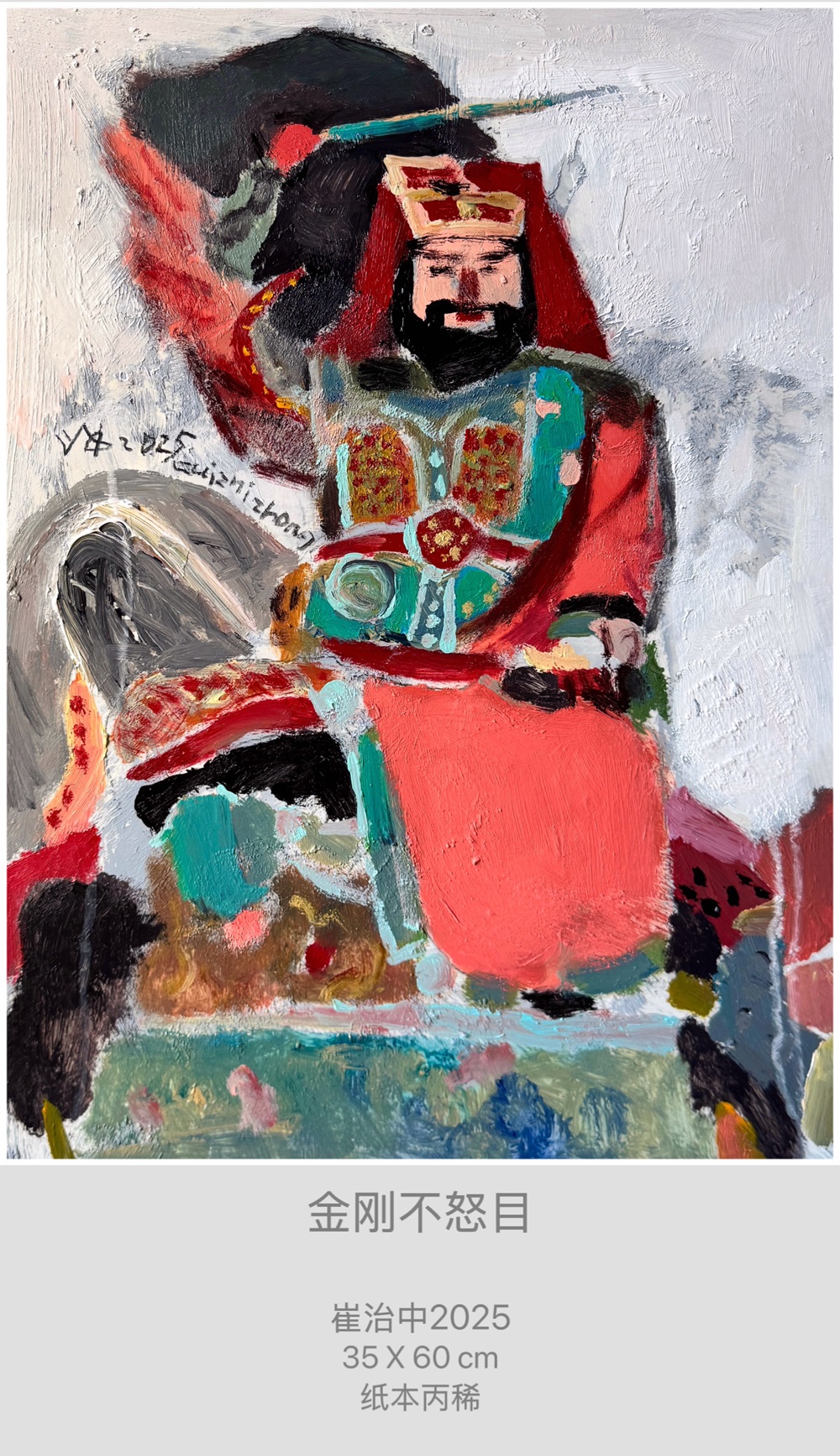 在當(dāng)代藝術(shù)的浩瀚星空中,崔治中無疑是一顆璀璨的星辰。畢業(yè)于四川美術(shù)學(xué)院的他,不僅繼承了四川美院深厚的藝術(shù)底蘊(yùn),更在此基礎(chǔ)上形成了自己獨(dú)特的藝術(shù)風(fēng)格。他的作品,如同一面鏡子,映照出當(dāng)代社會的復(fù)雜情感與深刻思考,同時也展現(xiàn)出藝術(shù)家本人對于生活、對于世界的獨(dú)特理解和感悟。崔治中的作品具有強(qiáng)烈的當(dāng)代意識,每一幅畫作都仿佛是一個故事,一個靈魂的獨(dú)白。他的畫面,充滿了強(qiáng)烈的視覺沖擊力,卻又在喧囂中保持著一份難得的寧靜與深沉。他用油彩作為媒介,宣泄著自己的擔(dān)當(dāng)、情懷以及對社會的責(zé)任感。在他的筆下,色彩不僅僅是視覺的享受,更是情感的流露與思想的傳遞。那些看似雜亂卻沉著有力的筆觸,仿佛在訴說著一個又一個關(guān)于人生、關(guān)于友誼、關(guān)于怨恨、關(guān)于博愛的故事。