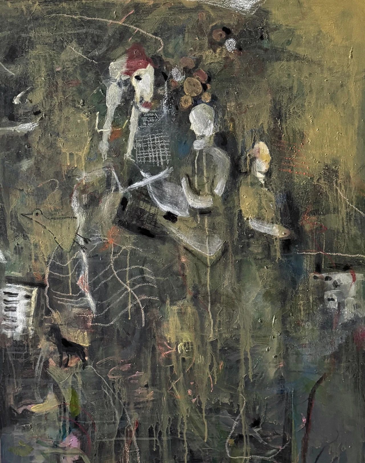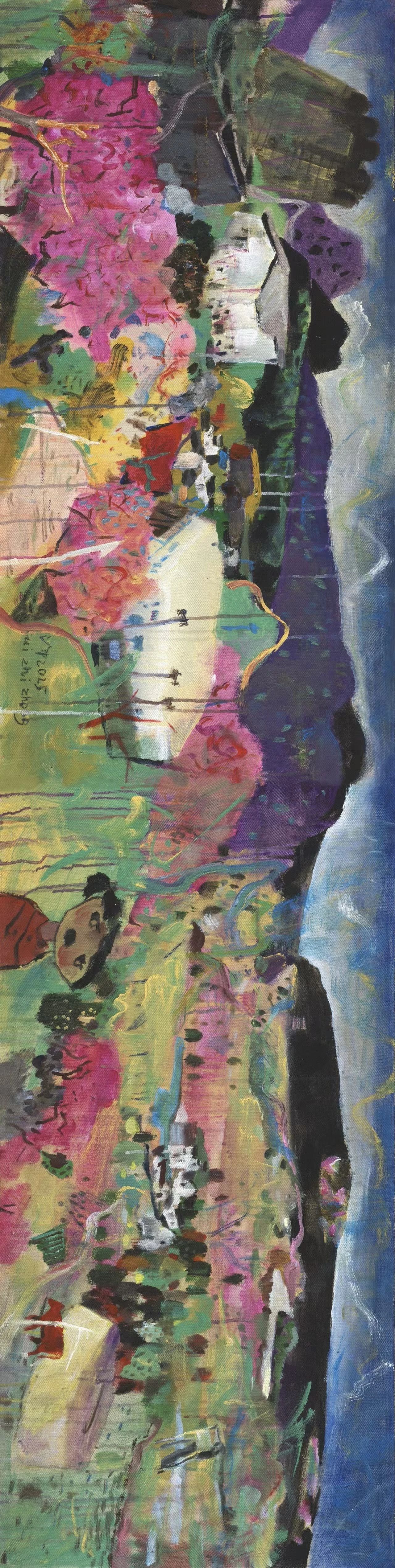 他的作品,讓人感受到一種通天達(dá)地的力量,一種超越現(xiàn)實(shí)的詩意與深遠(yuǎn)。畫面中,既有四川美院傳統(tǒng)的超前意識,又有藝術(shù)家個人對于生活的深刻洞察。崔治中的畫,像詩歌一樣優(yōu)美,恬靜而委婉,將觀眾緩緩帶入一個又一個夢幻般的場景。他的每一幅作品,都像是一個精心構(gòu)建的夢境,讓人在其中流連忘返,沉醉不已。