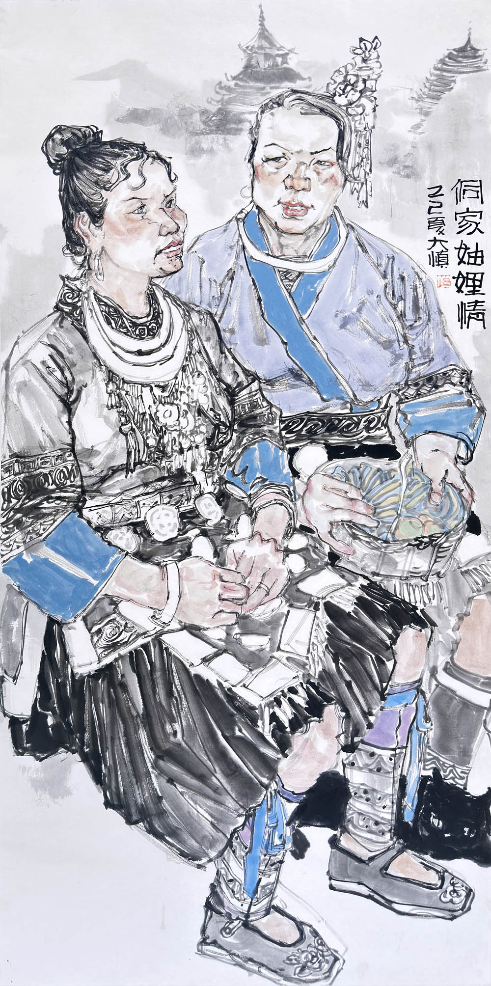 暮色中的八寨漸漸隱入墨色,畫紙上的人物卻愈發(fā)清晰。這場(chǎng)寫生與高研班八年間在其他少數(shù)民族地區(qū)的寫生經(jīng)歷相互映照,最終證明:民族性不是博物館里的標(biāo)本,當(dāng)代性也不是無(wú)根的浮萍。當(dāng)筆墨真正扎根于文化的土壤,又始終保持對(duì)時(shí)代精神的敏感,由此便能在傳統(tǒng)與現(xiàn)代的交匯處,生長(zhǎng)出既扎根本土又面向世界的藝術(shù)新形態(tài)。程陽(yáng)八寨的晨霧終將散去,但留在宣紙上的探索,會(huì)與在福建、貴州、湘西、云南等地的寫生成果一起,成為水墨藝術(shù)突圍之路上的重要坐標(biāo)。而我想更為重要的是,這種獨(dú)一性的水墨繪畫藝術(shù),更是在機(jī)械復(fù)制時(shí)代的當(dāng)下,闡釋并守護(hù)世界意義的最高真理表達(dá)。