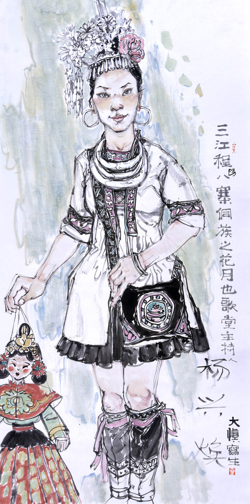 自 2018 年起,我每年暑期都隨王新倫導(dǎo)師的“水墨人物畫高研班”深入少數(shù)民族地區(qū)采風(fēng)、寫生,八年間足跡遍布福建惠安大、小岞、貴州黔東南歸柳、黃岡、小黃侗寨,岜沙苗寨、安順屯堡、湘西鳳凰、邊城、矮寨苗族、土家族村寨,云南石林彝族部落等地,今年王老師和我們商議后決定把寫生團(tuán)隊(duì)帶進(jìn)廣西三江侗鄉(xiāng)——程陽(yáng)八寨。
