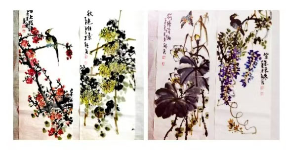 春夏秋冬來(lái)復(fù)去, 一年四季寫條屏。 乙巳夏月老鈍近作