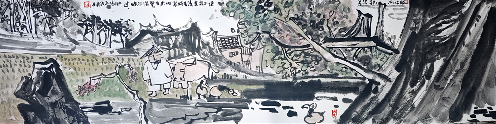 我畫(huà)油畫(huà)已有好些年頭。前些日子,為朋友用水墨畫(huà)了把扇子,靈感突然如泉涌般襲來(lái)。那扇面上的墨色暈染,像是打開(kāi)了我心中的一扇窗,讓我迫不及待地想把心中的想法訴諸筆端。