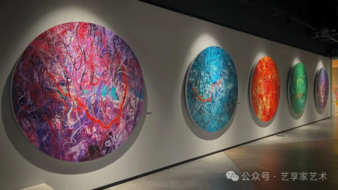 《藤蘿系甲》系列則展現(xiàn)了藝術(shù)家創(chuàng)作維度的多元探索。藤蘿枝蔓纏繞,是自然生機(jī)的靈動(dòng)寫照;“系甲”二字暗藏深意,暗合堅(jiān)韌不拔的品格追求。涂啟先以奔放灑脫的筆觸、濃淡相宜的色彩,讓藤蘿在畫布上舒展交織,或繁密如織盡顯生機(jī),或疏朗有致暗藏清雅。大幅作品氣勢(shì)磅礴,小尺幅作品意蘊(yùn)悠長(zhǎng),在虛實(shí)相生的構(gòu)圖中,既呈現(xiàn)了藤蘿的自然之美,更賦予其人文精神的象征意義,達(dá)成了自然意趣與情志追求的完美交融。
