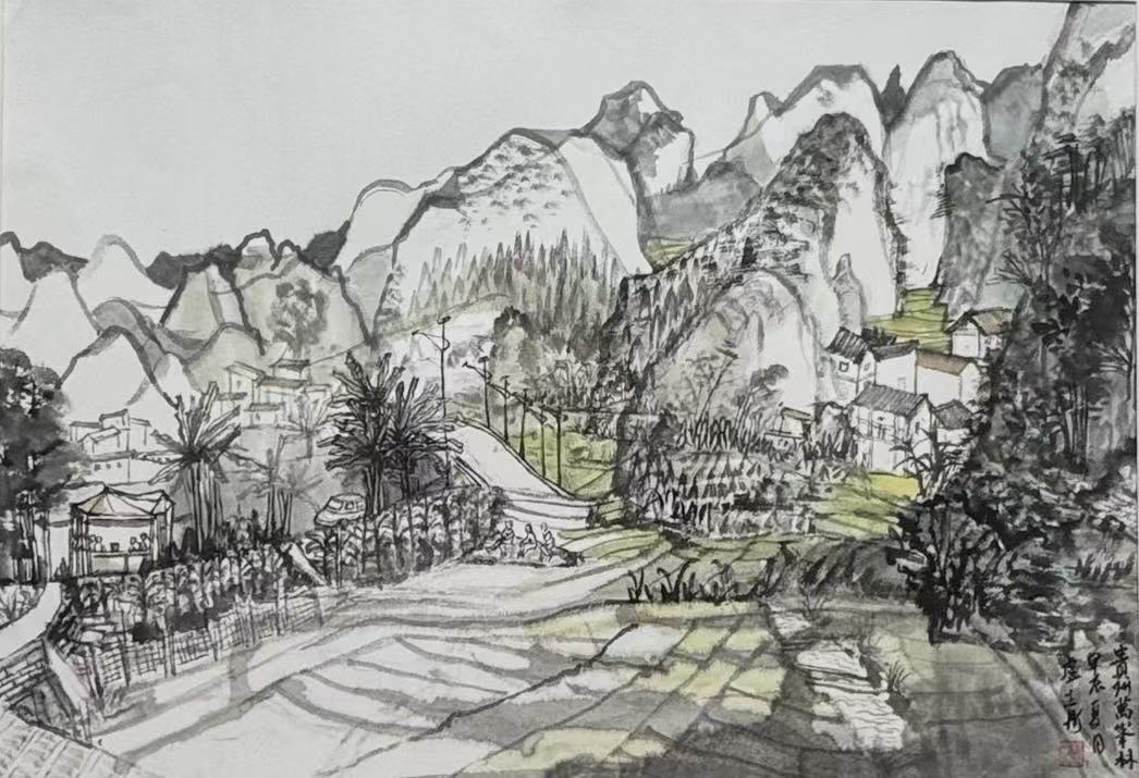 近一年來,我緊隨"越過山丘"團隊,與方金河、吳克強、楊玉泉等老師流連于木蘭溪沿岸,繪綬溪煙柳、東陽古村風貌,摹東巖山秀色、蘿苜田古韻,望雁陣塔倚天矗立……我亦隨徐珮瑾老師遠足,探貴州萬峰林的雄奇、漳州東湖村的溫婉、山西后溝的厚重。南北風物,各有千秋,寫生之路,亦是修行之路。在行走中開闊眼界,在感悟中提升技藝,皆是對自然的赤誠對話。