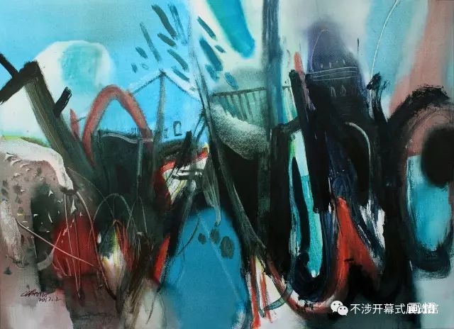 綜上所述,姚波的《都市行草》系列作品體現(xiàn)著始終如一的開闊和自由的心境,我們看不出他在這些作品中寄寓任何現(xiàn)實(shí)的事功圖謀,透視出一種堅(jiān)毅自信且高貴的審美追求;甚至在其色韻、筆致和構(gòu)成的格局中,總流露著一種難得的優(yōu)雅的滿足。這種悠然的心境與古代先賢哲人的“靜觀”“澄懷觀道”及“游心騁思于八極之外”的藝術(shù)理想不無呼應(yīng)之處。