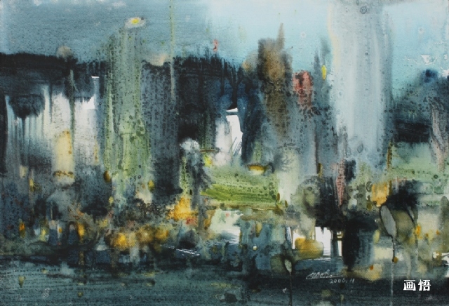 《雨城》78x54.5cm 水彩 2008華東六省一市水彩畫家邀請展 2006