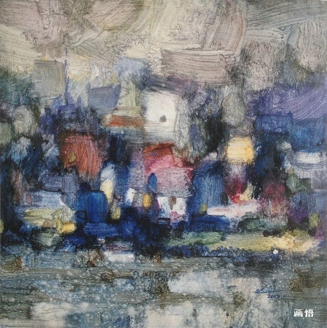 《閩南小鎮(zhèn)》54x54cm 水彩 2003第二屆中國美術金彩獎作品展覽 2002
